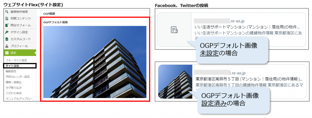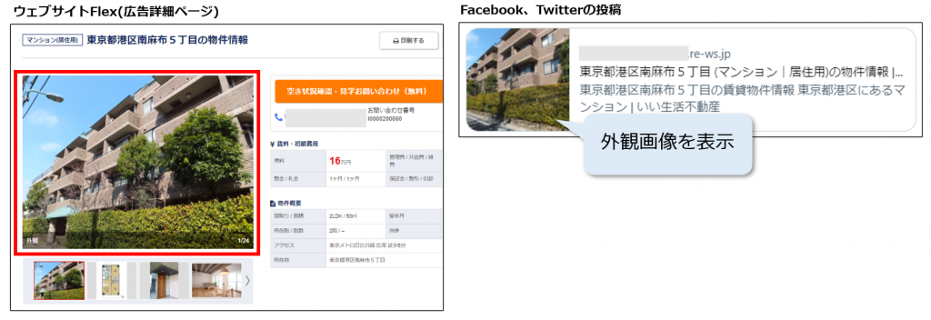 FacebookやTwitterに広告詳細ページや建物ページを投稿する際に