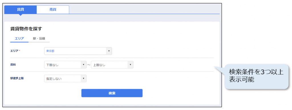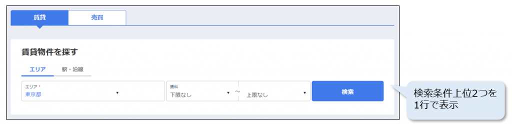 簡易物件検索の設定で選択した検索条件の上位2つが表示されます。
