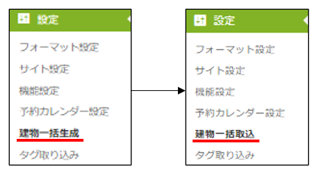 - 左上の「棟一括取り込み」を「建物ページ一括取込」に表記変更