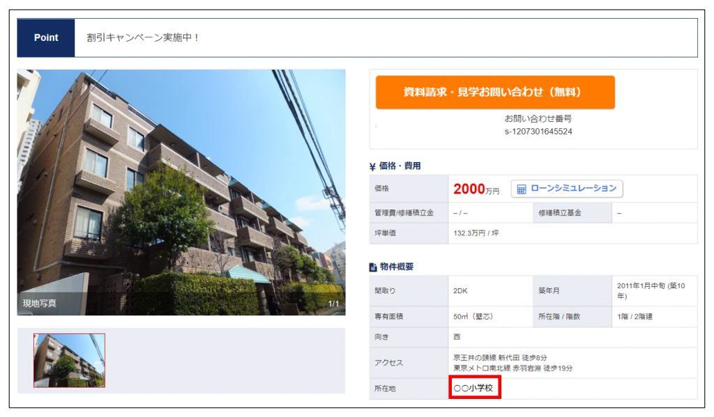 例えばESいい物件Oneで作成した学区タグ等を表示することで、