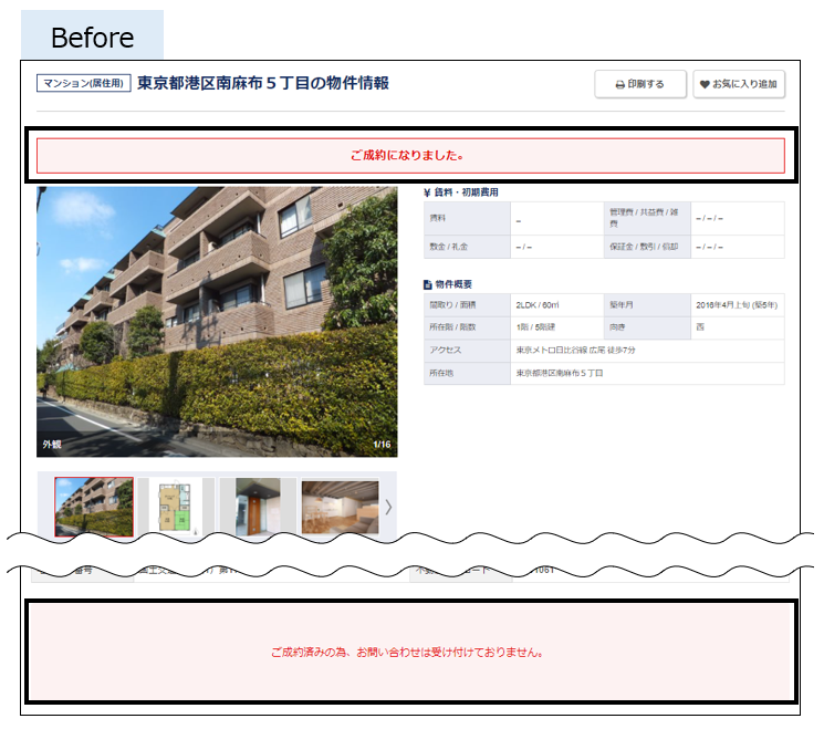 Before:ご成約になりました。ご成約済みの為、お問い合わせは受け付けておりません。