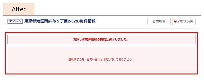 After:お探しの物件情報の掲載は終了しました。掲載終了の為、お問い合わせは受け付けておりません。