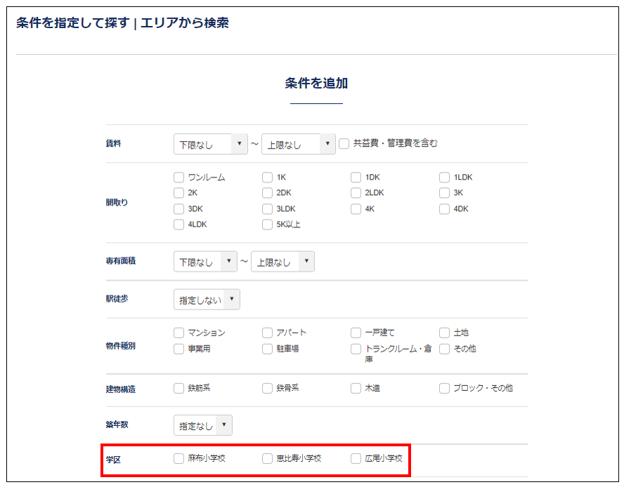 小学校名や大学名など、任意の検索条件を追加したい場合は是非ご活用ください!