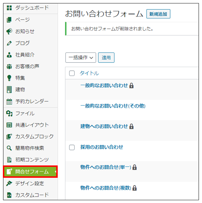1. 退去申請や採用などの問合せフォームを作成できるようにします