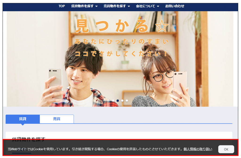 エンドユーザーにてCookie利用の同意(許可)を行うバナーを表示できるようにします。