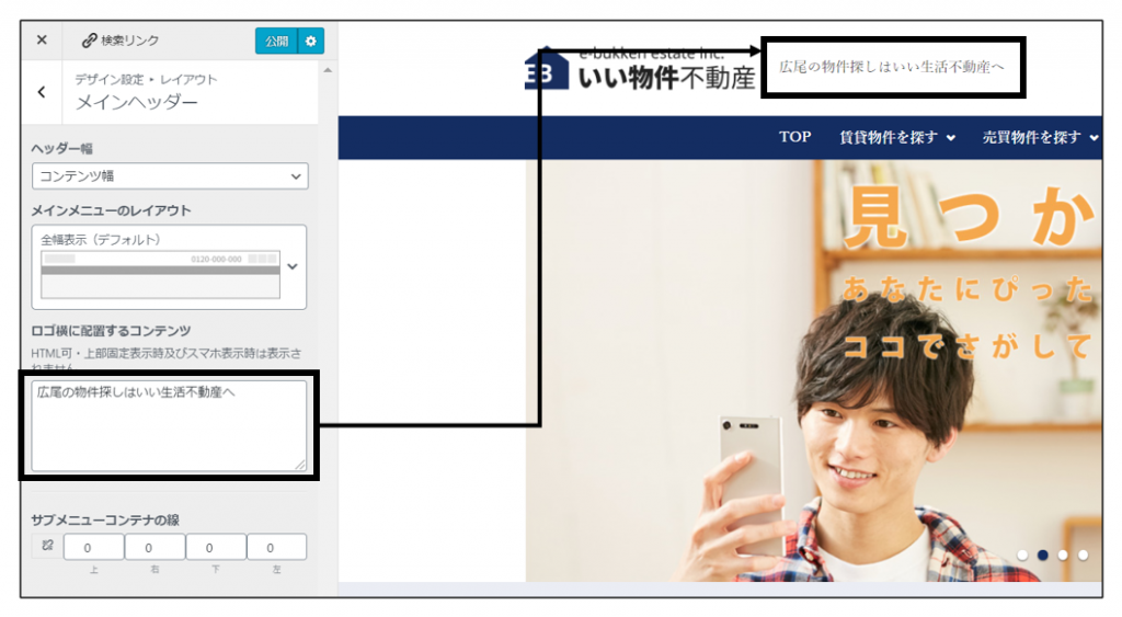 ・ロゴ横に配置するコンテンツ