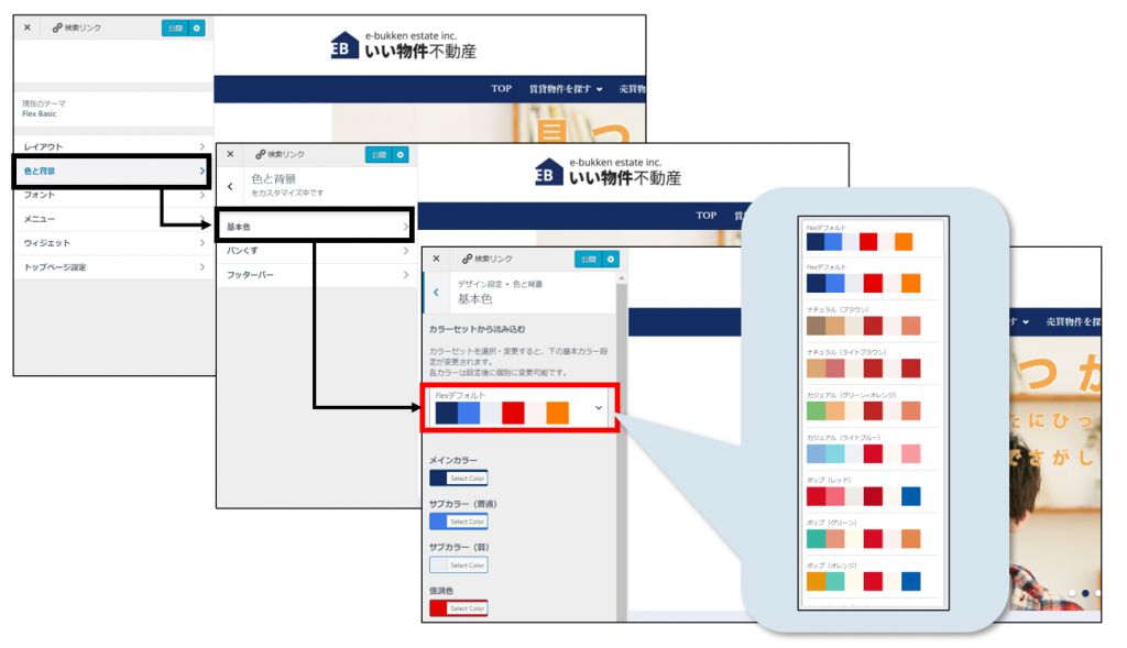 デザイン設定の画面にカラーセットを追加し、手軽にサイト全体のカラーを変更できるようになります。