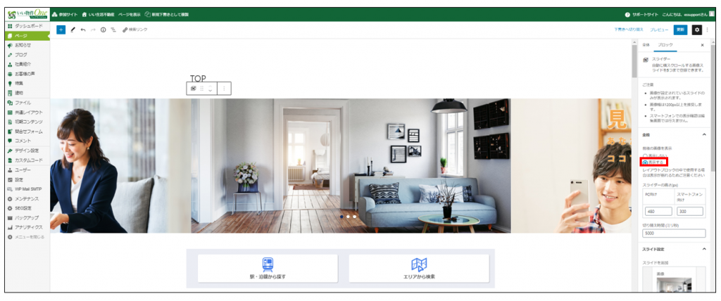 2.スライダー画像で前後の画像を左右に並べられるようになります