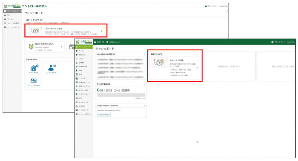 5.管理画面、コントロールパネルのダッシュボードからセミナー動画を開けるようになります