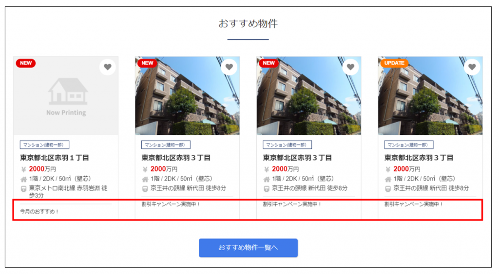 3.特集新着物件ブロックで売買物件を選択した場合でも、セールスポイントが表示されるようになります