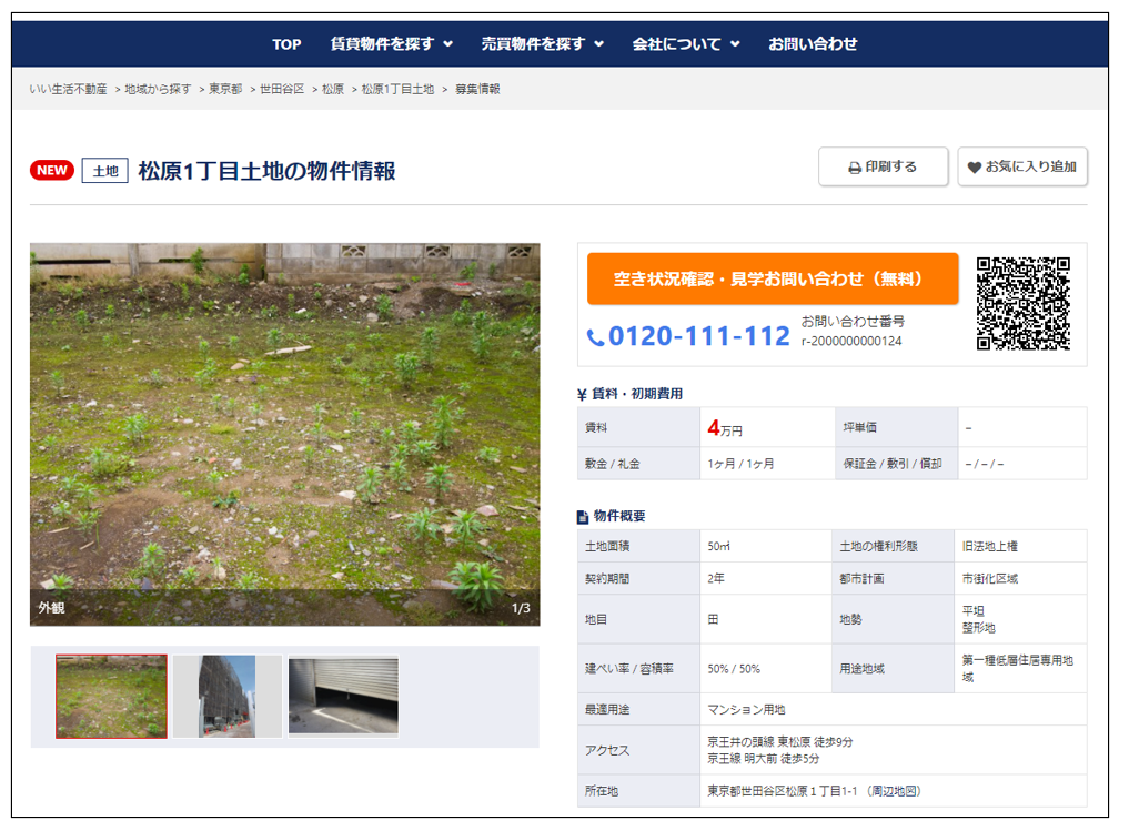 他の物件同様、ESいい物件Oneから賃貸の「土地」を掲載できるようになります。