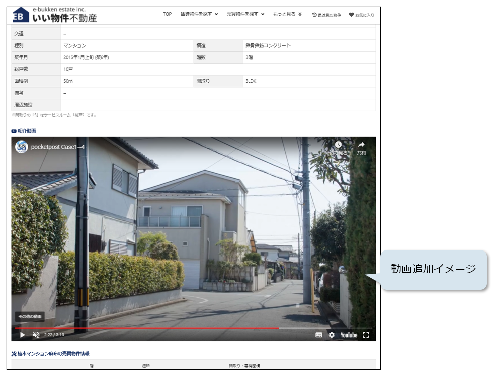 2.建物ページ内にYouTube動画の埋込設定を追加します