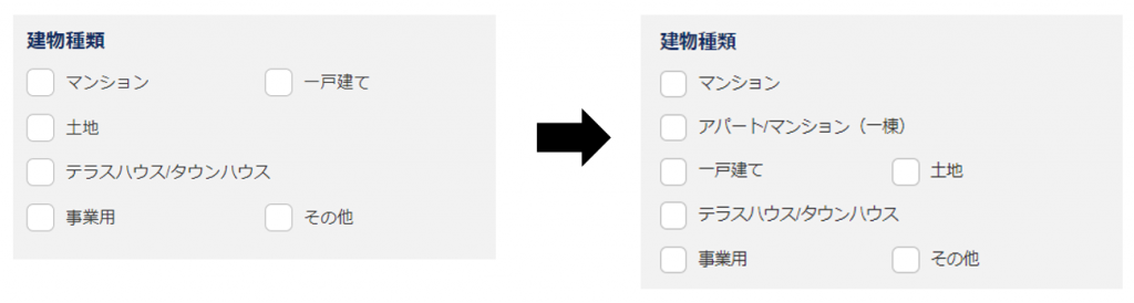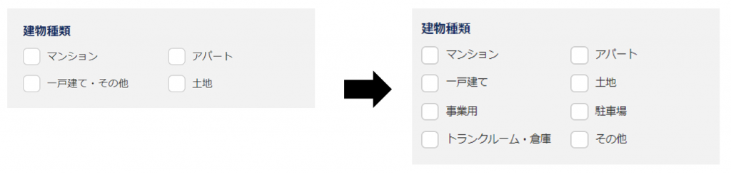 1.物件検索条件の建物種類の選択肢を増やします