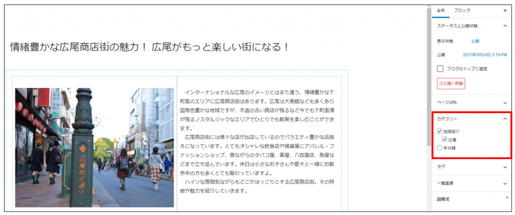 ②ブログの編集画面で設定済みのカテゴリーを指定します。