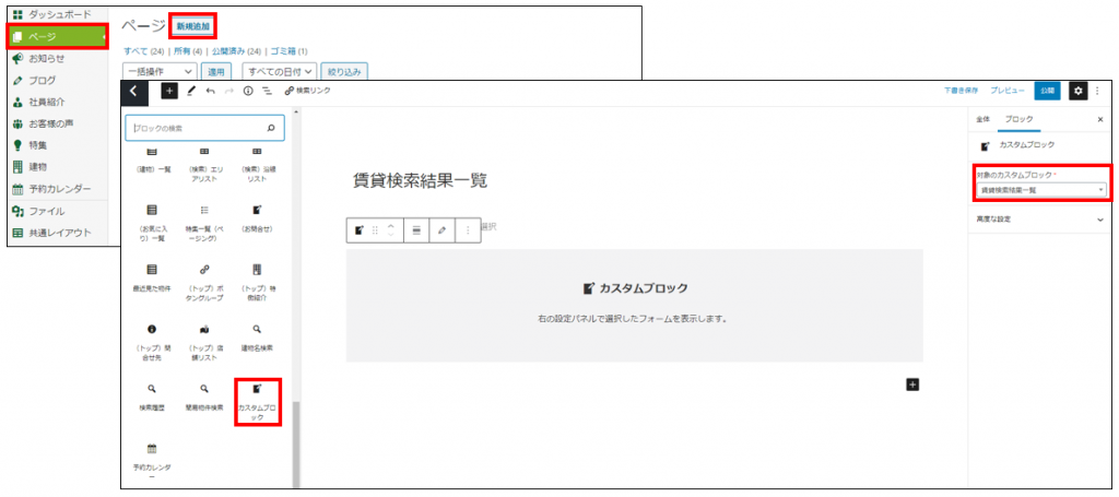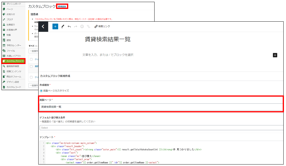 3. カスタムブロックで賃貸物件一覧・売買物件一覧をカスタマイズできるようにします ※Premiumプラン