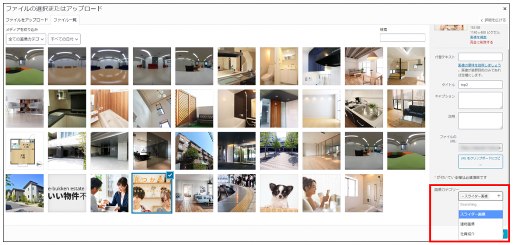「画像カテゴリー」の選択肢に追加済みのカテゴリーが表示されるので、指定します。