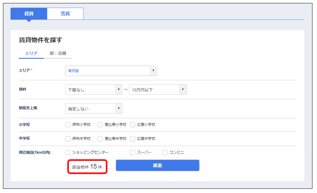 簡易検索物件ブロックにも、同様に該当物件数が表示されるようになります。
