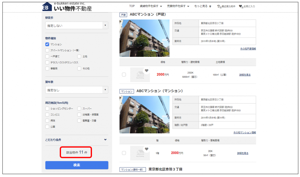 1. 検索結果一覧に該当物件数が表示されるようになります