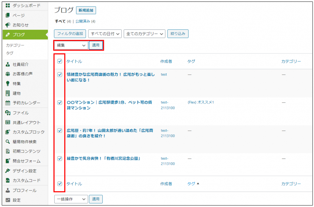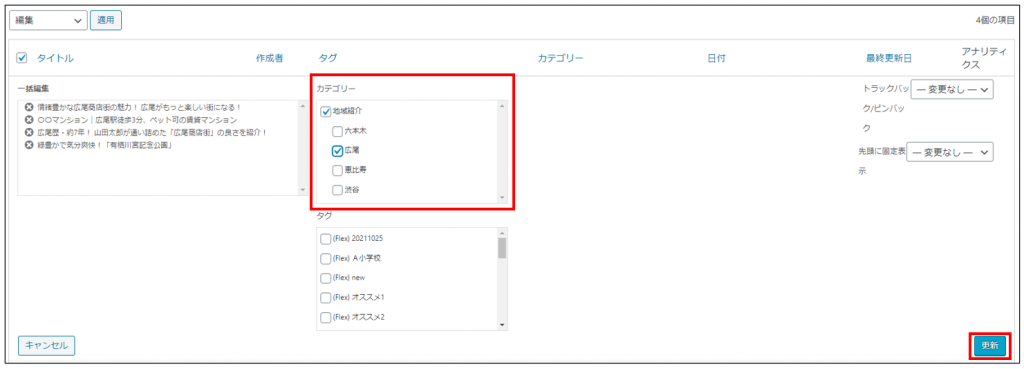 2. ブログ一覧でカテゴリーを一括付与できるようにします