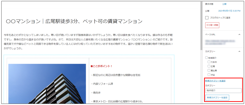 3. ブログの編集画面でカテゴリーを新規作成できるようにします