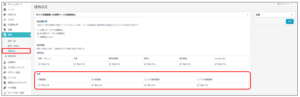 ①建物ページ取込時に自動的に画像も取り込めるようにします
