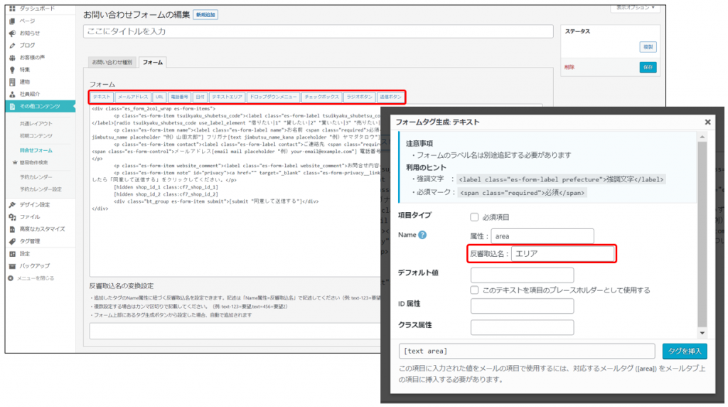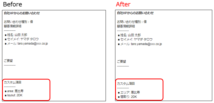 問合せフォームのカスタマイズにおいて、カスタム項目を任意の名称に変換できる設定を追加します。