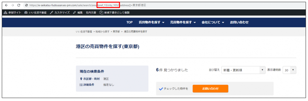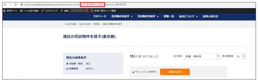 2. エリア検索のURL表記を一部日本語からコードに変更します