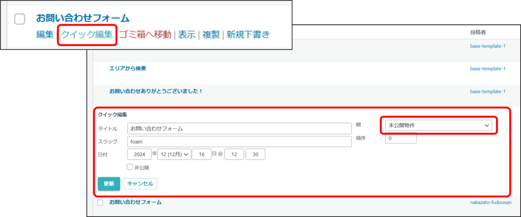 例)親ページ:未公開物件