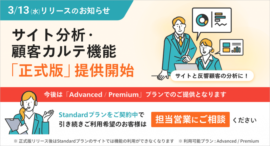 2.サイト分析・顧客カルテ機能の正式版のご提供を開始します ※Advancedプラン以上
