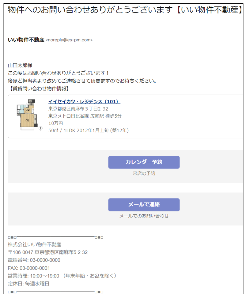 - 物件情報や問い合わせボタン等を従来のテキスト形式よりも分かりやすく表示できます。