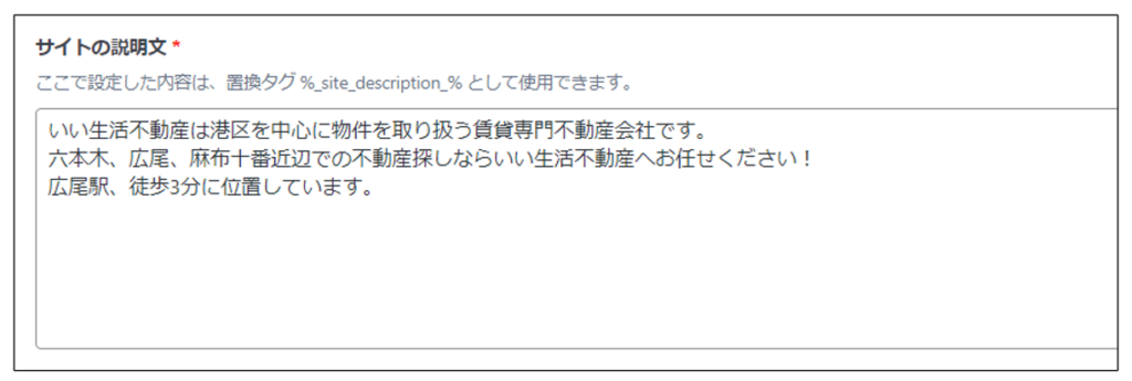 サイトの説明文のタグ「%_site_description_%」を用いると
