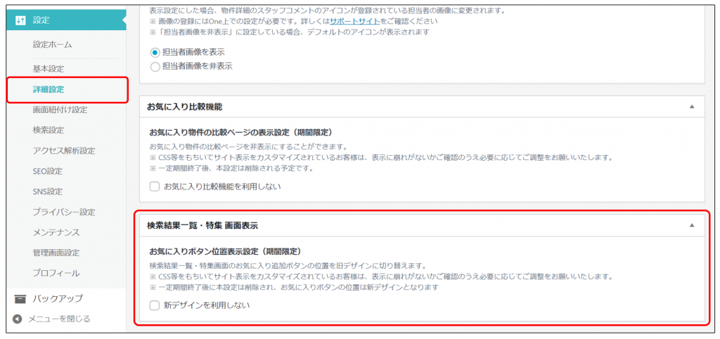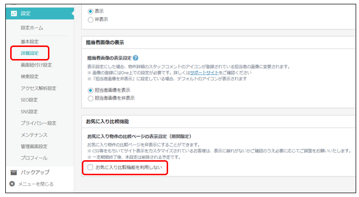 2.お気に入り比較機能のON/OFF設定のご提供を終了します ※Advancedプラン以上