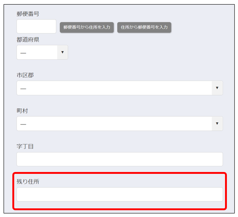 お問い合わせフォームの顧客住所・物件住所の「残り住所」欄を変更します。