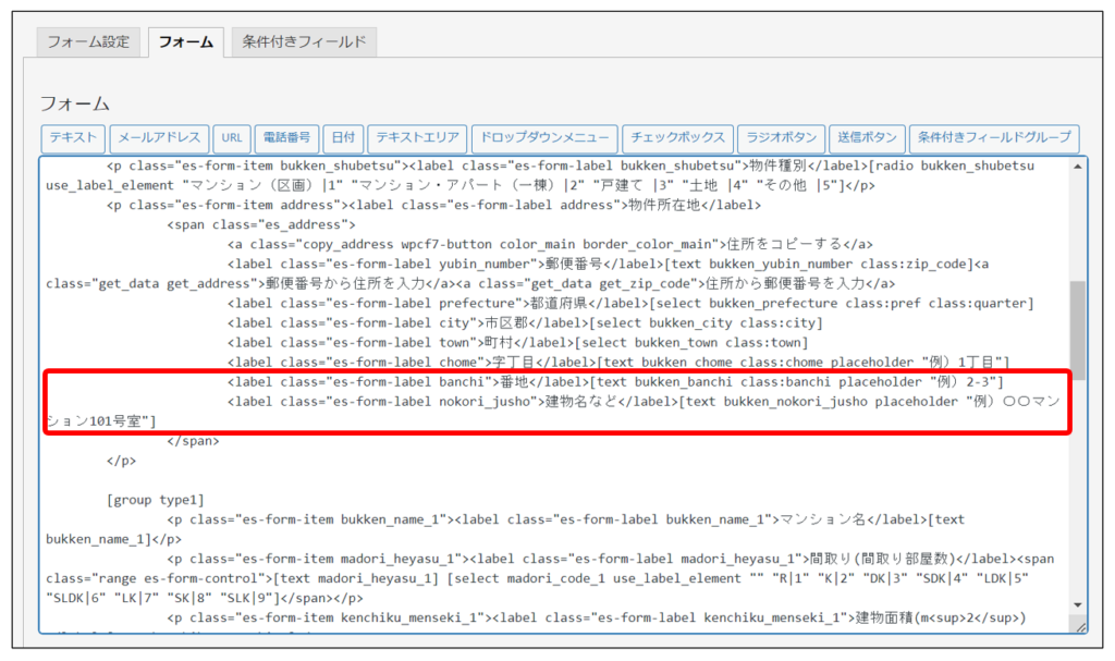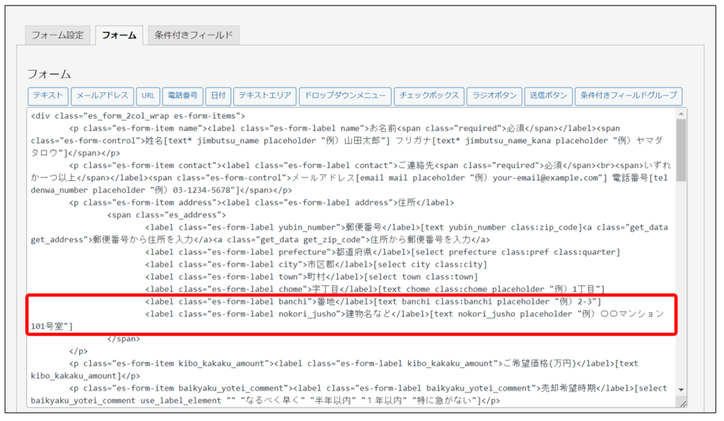 <label class="es-form-label banchi">番地</label>[text bukken_banchi class:banchi placeholder "例)2-3"]