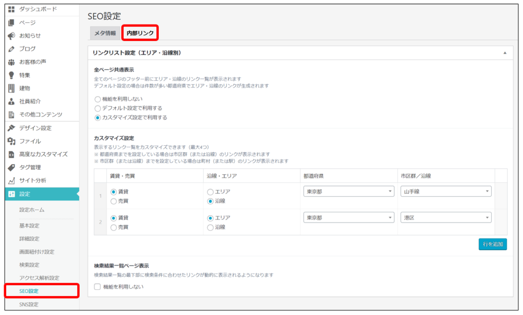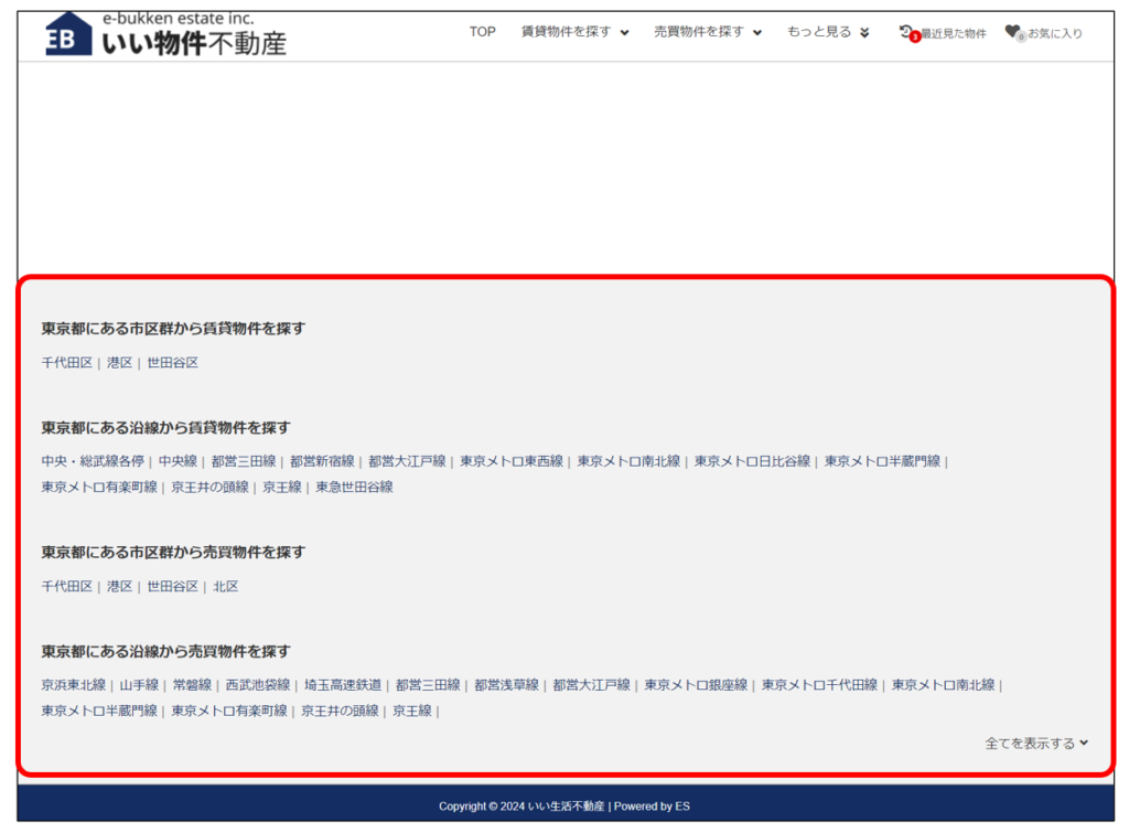 1.エリア・沿線別の物件一覧リンクをサイトに表示できるようにします