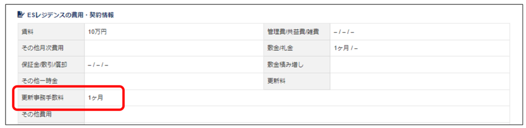 賃貸広告詳細ページの費用・契約情報欄に「更新事務手数料」が連動できるようになります。