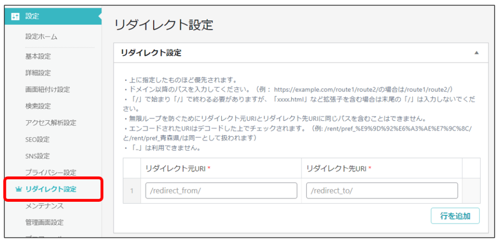 2.サイト内ページのリダイレクト設定が可能になります ※Advancedプラン以上