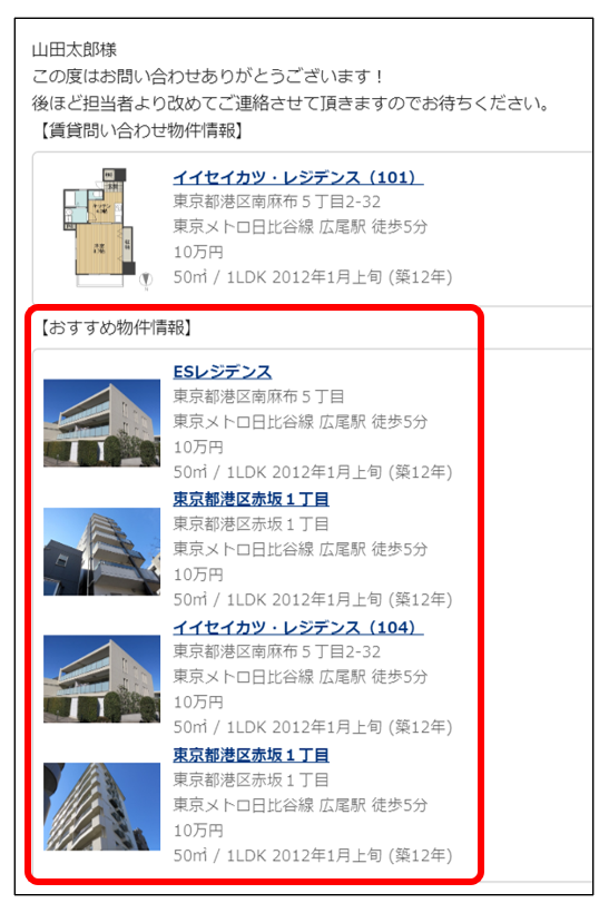1.物件のお問い合わせサンキューメールでおすすめ物件を紹介できるようにします ※Advancedプラン以上