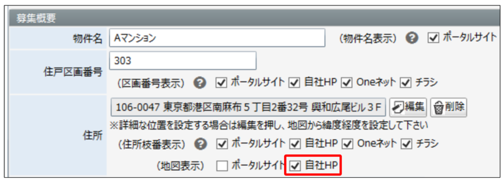 4.「地図表示」を許可している物件のみ「地図から検索」に表示されるようにします ※10月16日追記