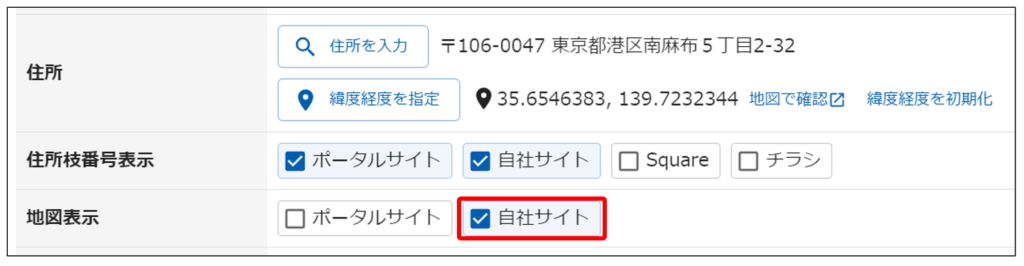 「地図表示」>「自社HP(自社サイト)」にチェックを入れて保存してください。