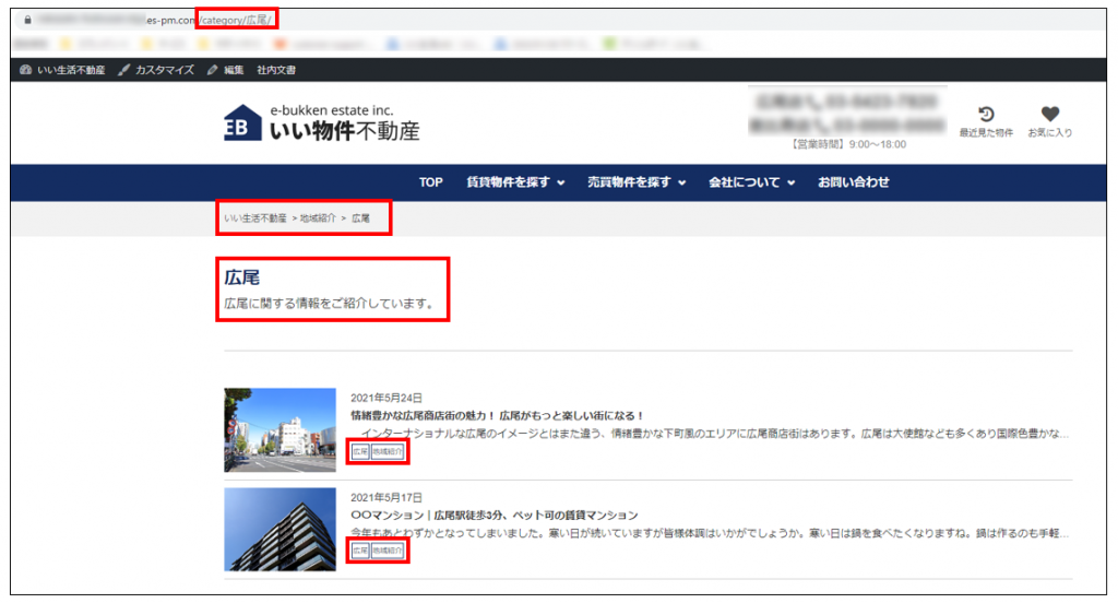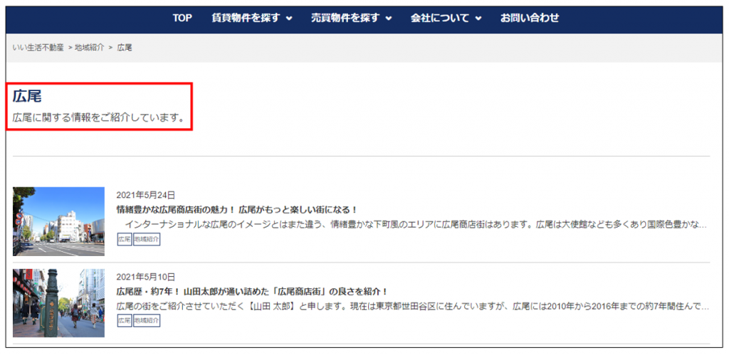 - カテゴリーのURLページにアクセスした際は、カテゴリーに紐付くブログ記事が一覧表示されます