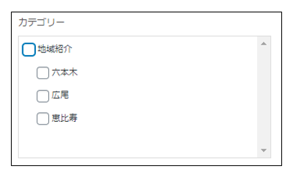 ・カテゴリーは1つまで選択できますが、子カテゴリーを選択した場合は親カテゴリーも選択されます。