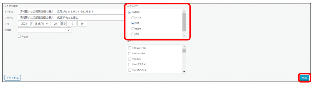 ・既にカテゴリーを設定済みの記事はカテゴリーが上書きされます。