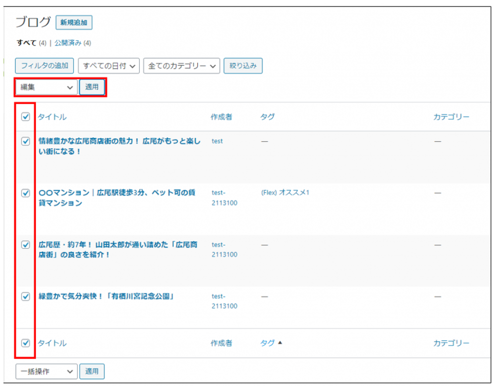 1.ブログ一覧でカテゴリーを付与したい記事にチェック