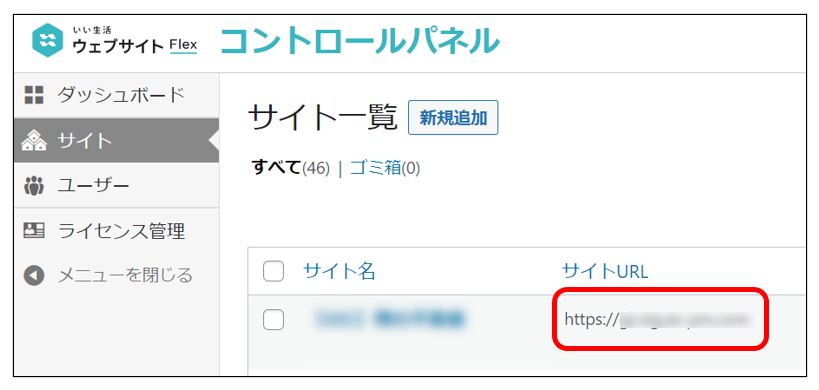 URLはコントロールパネル>サイト>サイトURLにて確認可能です。