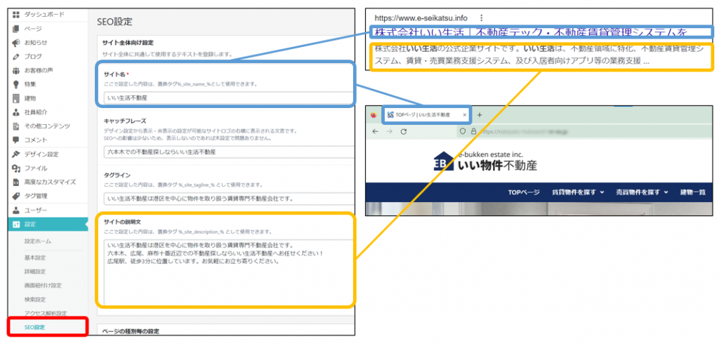 サイトの紹介文は検索エンジンの検索結果に表示されるものです。