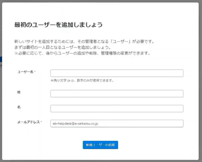 ログイン後、画面の案内に従って最初のユーザー追加をおこなってください。