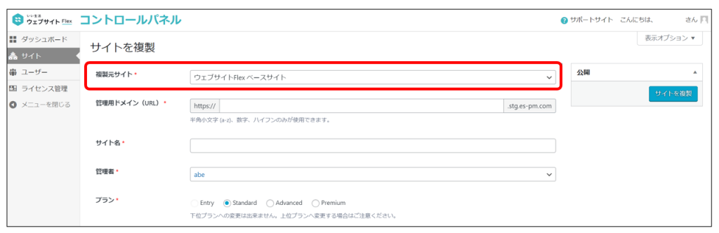 サイトは作成済みのサイトから複製(コピー)して作成することができます。