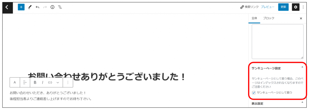 ※チェックを外す際にはサンキューページの割り当て設定が外れる可能性がございますので、ご注意ください。