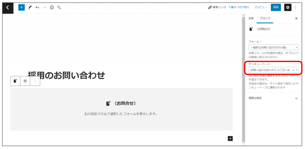 作成したサンキューページはどのお問い合わせフォームで表示するか割り当てる必要があります。